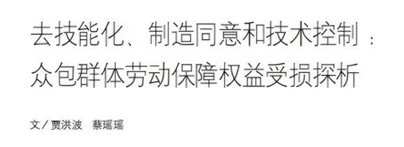 近日,北京航空航天大學人文社會科學學院(公共管理學院)賈洪波教授、博士研究生蔡瑤瑤發(fā)表《去技能化、制造同意和技術控制:眾包群體勞動保障權益受損探析》一文,被《人大復印報刊資料·勞動經(jīng)濟與勞動關系》so米體育-NBAso米直播第9期全文轉(zhuǎn)載